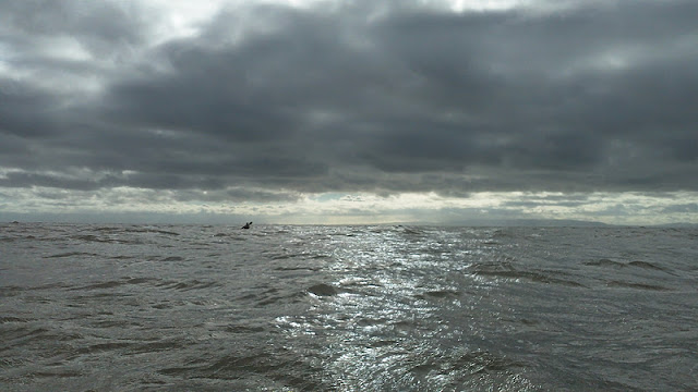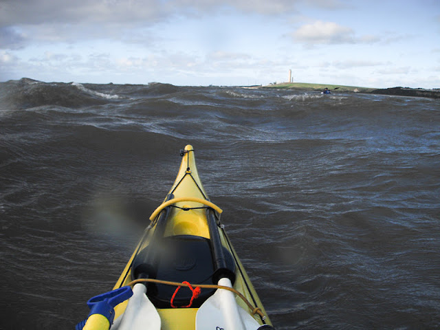 As soon as we left cover of the bay we hit a strong headwind and with the tide going in the opposite direction this made for some rough water and some quite big swells. With Taran just coming back from his 4 star in Cornwall having coped with 5 foot swells and big surf this was a walk in the park for him! For me it was a bit scary and hard going.